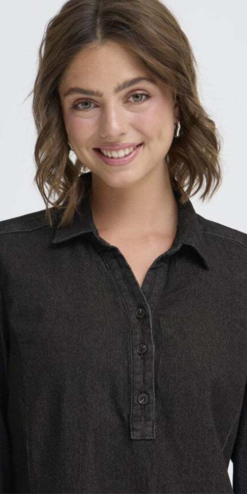 Size GuideEffortlessly cool and comfy, the Fransa Denim Tunic Dress is your new go-to for easy dressing. Crafted from lightweight denim, it features a breezy A-line shape, playful roll sleeves with button tabs, and a flattering curved hemline that hits right at the knee. Perfect for tossing on and heading out in style!