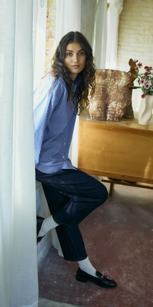 Size GuideSize 40 Ships Oct 6th Step into comfort and style with the Fransa Dark Indigo Barrel Jeans. Crafted from soft, lightweight dark denim, these jeans feature a loose barrel-shaped leg...