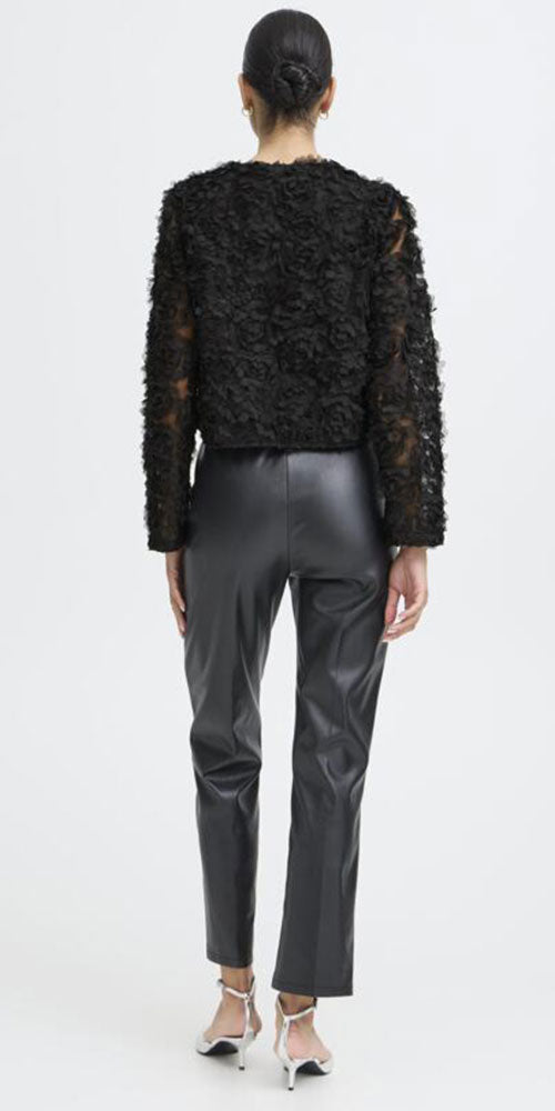 Make a statement with this show-stopping rosette jacket that transforms the classic black blazer into something extraordinary. Delicate textural rosettes dance across a special, timeless fabric that feels as refined as it looks, while playful satin bow tie closures add just the right touch of personality.