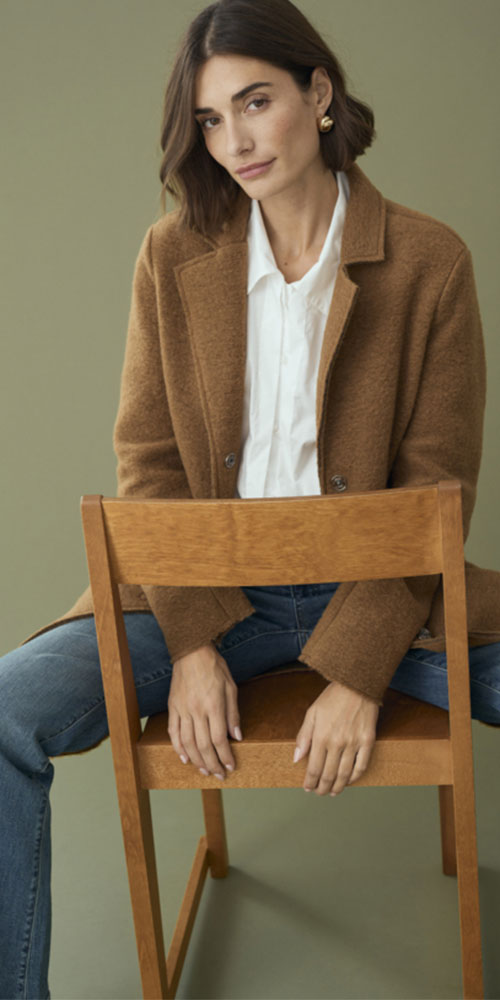 Size GuideThe Culture Boiled Wool Jacket in caramel brings effortless style with a playful edge. Its longer, deconstructed design features oversized snap buttons that add a fun, bold statement. Crafted from...