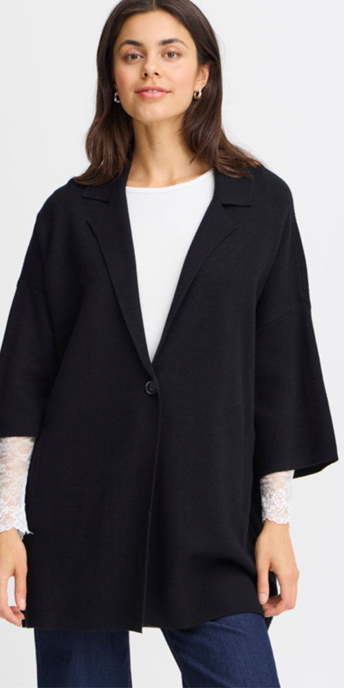 Size GuideBoth sizes ship Oct 6th Wrap yourself in cozy sophistication with the Fransa Knit Blazer Cardy. This oversized top layer combines the plush comfort of a smooth, refined knit with...
