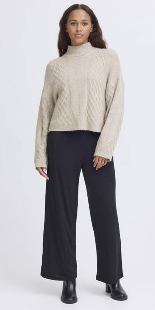 Size GuideCozy meets cool in this Ichi Cableknit Sweater in oatmeal. Featuring a relaxed fit, a chic mock neck, and wide sleeves, it’s the perfect blend of comfort and style for...