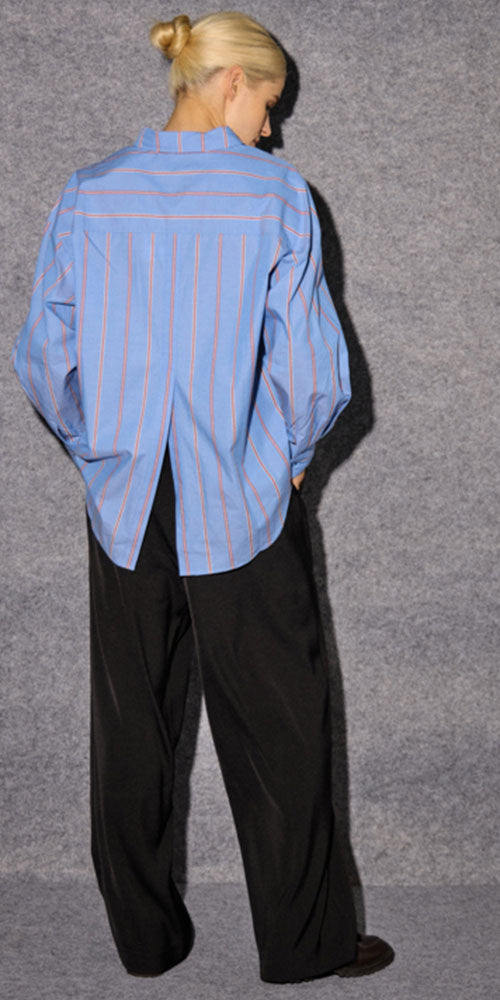 Size GuideElevate your fall wardrobe with the Ichi Vented Button Up Shirt, featuring a playful mix of cool brown and blue stripes. Its oversized fit adds effortless style, while the unique...