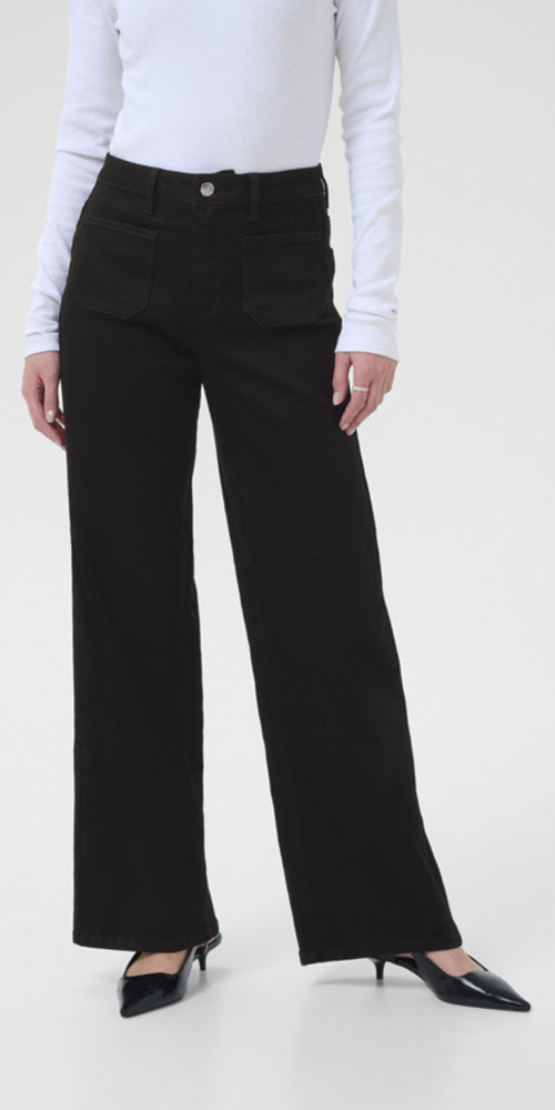 Size GuideThese Kaffe High Waist Sailor Jeans in jet black offer a flattering fit through the waist and hips, complemented by a slightly wide leg cut for effortless style. Featuring cute...