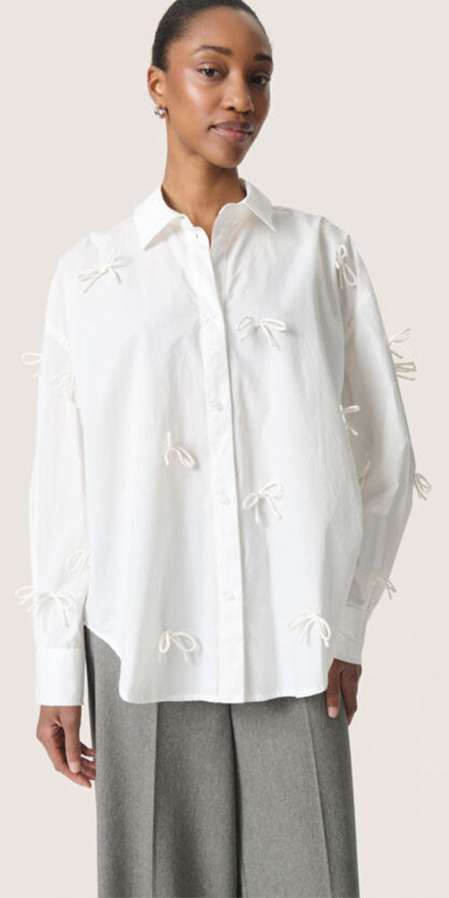 Size GuideThe Soaked Bow Appliqué Shirt blends timeless elegance with modern charm through its sweet, trending bow details. Crafted from crisp cotton, this versatile button-up offers a refined silhouette enhanced by...