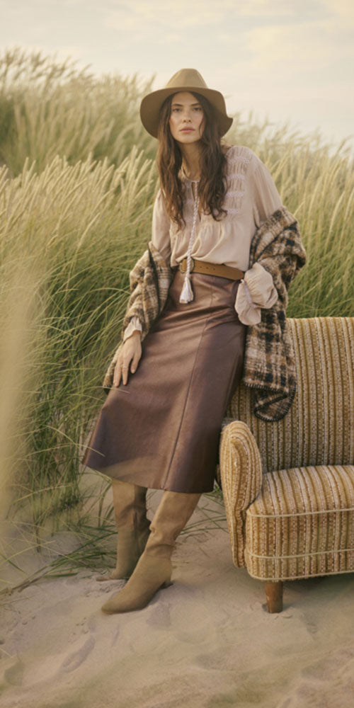 Size GuideEmbrace fall’s charm with this playful cream faux leather midi skirt, perfect in its flattering A-line cut. Its rich brown warmth pairs beautifully with cozy sweaters and feminine blouses, creating a timeless seasonal look. Layer up with scarves and cardigans, add tights and boots, and you’re ready for crisp autumn days with effortless style and comfort.