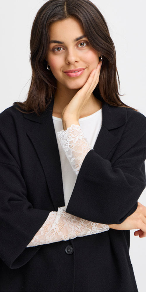 Wrap yourself in cozy sophistication with the Fransa Knit Blazer Cardy. This oversized top layer combines the plush comfort of a smooth, refined knit with the sharp style of a blazer, perfect for pulling any outfit together with ease. Whether you’re lounging or out and about, it’s your go-to for effortless chic and all-day comfort.
