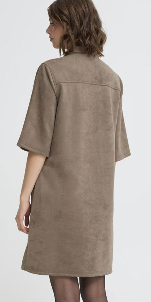 Slip into effortless style with this relaxed shift dress that's basically a hug you can wear. The buttery-soft sueded fabric feels as good as it looks, while the classic polo collar adds a touch of preppy charm. Loose-fitting through the body for all-day comfort, plus hidden side pockets—because who doesn't love a dress that actually lets you carry your stuff? In a versatile taupe that pairs with everything in your closet.