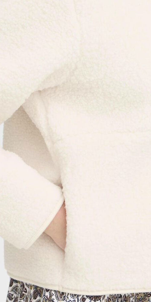Size GuideThis off-white Fransa Teddy Jacket is your new favorite cozy companion. With snap buttons and neat bound edges, it’s easy to slip on and off. Featuring handy side pockets and a collarless design, it’s perfect for layering under a coat or rocking solo as a stylish top layer—indoors or out. Soft, sweet, and effortlessly cool, it’s the jacket that makes every day feel snug and fun.