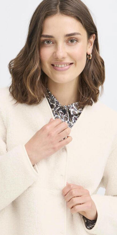Size GuideThis off-white Fransa Teddy Jacket is your new favorite cozy companion. With snap buttons and neat bound edges, it’s easy to slip on and off. Featuring handy side pockets and...