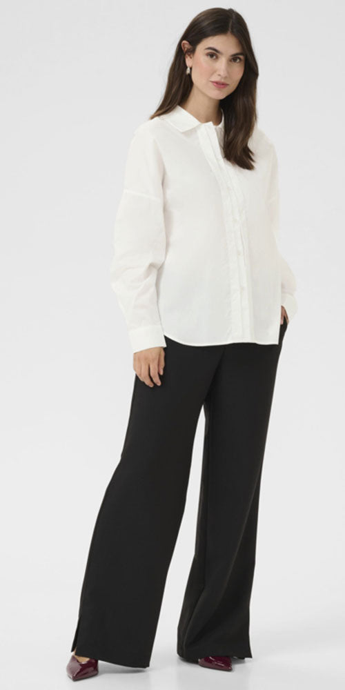Size GuideThese black Ichi Wide Leg Ponte Pants combine sophistication with comfort, crafted from smooth ponte knit fabric that feels soft against the skin. Featuring a contoured waist with internal elastic—without ruching or a waistband—for a sleek silhouette. The side zipper ensures easy wear, while the moderately wide leg offers a flattering and polished look, perfect for both professional and casual settings.