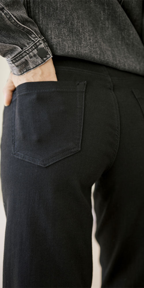 Size GuideThese Kaffe High Waist Sailor Jeans in jet black offer a flattering fit through the waist and hips, complemented by a slightly wide leg cut for effortless style. Featuring cute sailor-style front patch pockets, they mix playful charm with comfy stretch fabric. Perfect for dressing up your casual wardrobe with an easygoing, chic vibe.