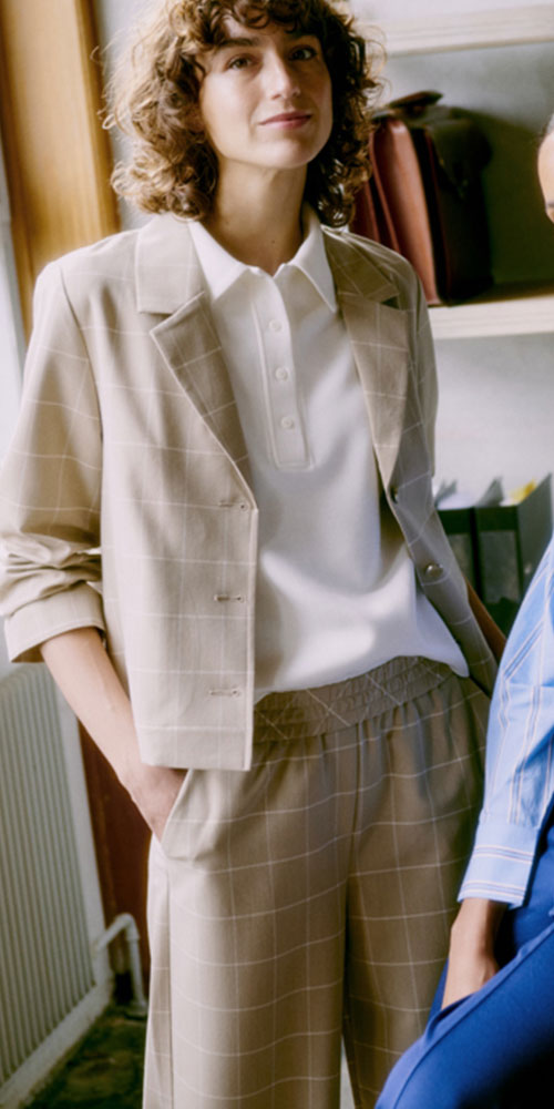 Size GuideSizes 34, 36, 42 ship late FEB Layer this adorable windowpane check blazer over everything from crisp button-ups to casual tees. The soft sand tone pairs effortlessly with the matching...