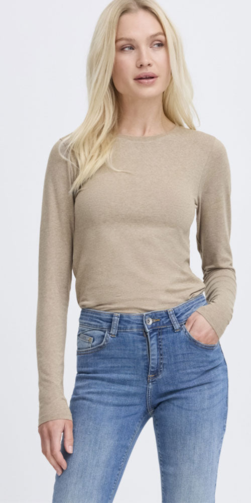 Size GuideA beautiful, basic long sleeved tee to get you through all of your layering needs! Fitted cut with side seams. hip length crew neck 47% Organic Cotton, 47% Modal,6% Spandex fitted...