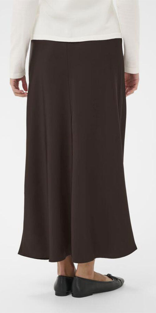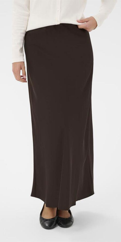 Glide through your day in luxe comfort with this Saint Tropez satin maxi skirt. The sumptuous chocolate brown hue pairs effortlessly with chunky knits and boots for an understated weekend vibe, or dress it up with sparkles and heels for evening glamour. Smooth, flowing fabric drapes beautifully with every step—a versatile wardrobe essential that works as hard as you do.