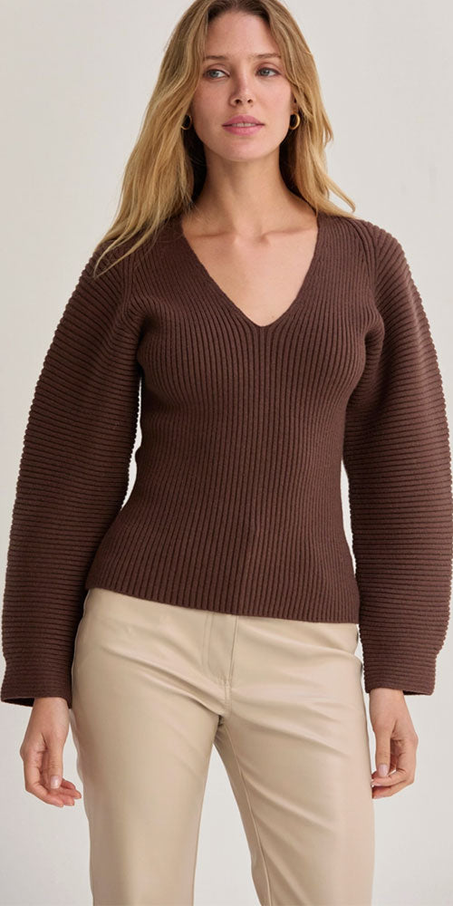 Size GuideThis chocolate brown pullover is the wardrobe MVP you didn't know you needed. With a fitted cut that flatters and barrel sleeves that bring modern edge, it transitions seamlessly from...