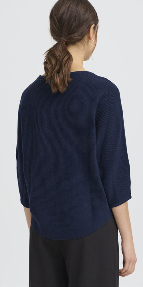 Size GuideSlip into effortless style with this beloved Fransa pullover. The relaxed fit and curved hem create a flattering silhouette, while the comfy dolman sleeves offer that perfect blend of cozy and chic. Rich dark navy works with everything in your closet—dress it up or keep it casual. A fan favourite for good reason: it's the kind of piece you'll reach for again and again.