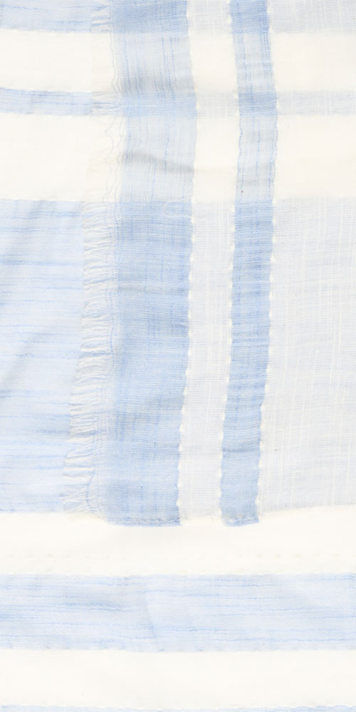 Size GuideLightweight woven scarf with blue and white in a fresh variegated stripe.