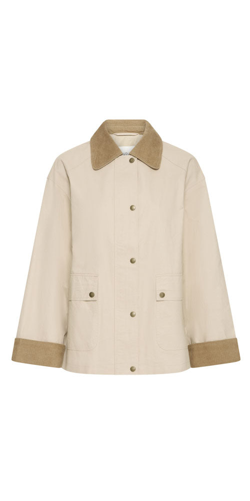 Size GuideLayer up in style this spring with the B.Young Cotton Barn Jacket—a trendy take on the classic barn jacket silhouette. Featuring rich corduroy trim along the collar and cuffs for added texture and visual interest, this jacket blends timeless workwear charm with contemporary flair. The dual zip and snap front gives you versatile closure options, whether you're buttoning up for a polished look or keeping it casual. Perfect for transitional weather and effortless everyday styling.