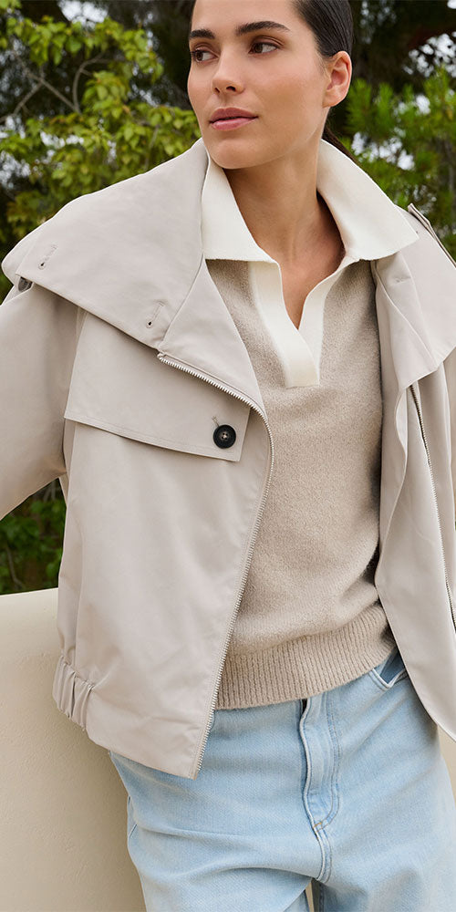 Size GuideIntroducing the Yaya Funnel Neck Trench Bomber—where edgy meets elegant. This hybrid masterpiece fuses bomber attitude with trench sophistication, wrapped in sumptuous luxe fabric that feels as good as it...