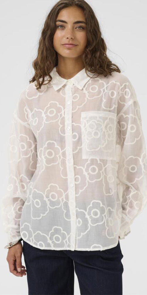Sheer organza gets a playful upgrade with an embossed retro floral print that demands attention. Wear it solo for a bold statement or layer it over basics to inject personality...