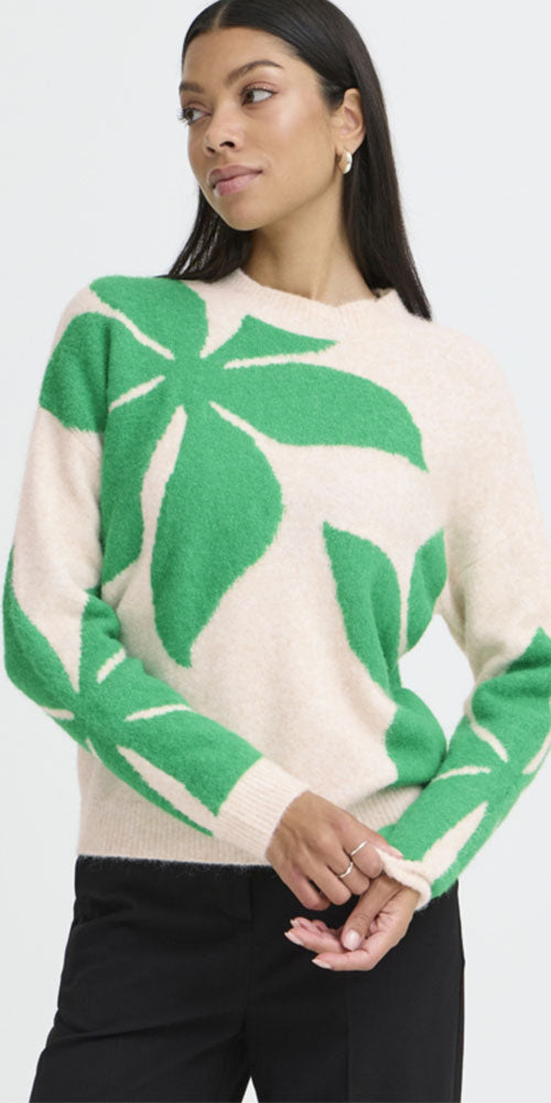 Size GuideSay goodbye to dreary winter days with this B.Young Starflower Sweater. Cheerful retro florals in sprightly emerald green pop against a neutral backdrop, creating the perfect balance of fun and versatility. Crafted from soft, cozy knit, it's designed to keep you comfortable while adding instant personality to your seasonal rotation. A delightfully playful piece that transforms any winter look from blah to brilliant.