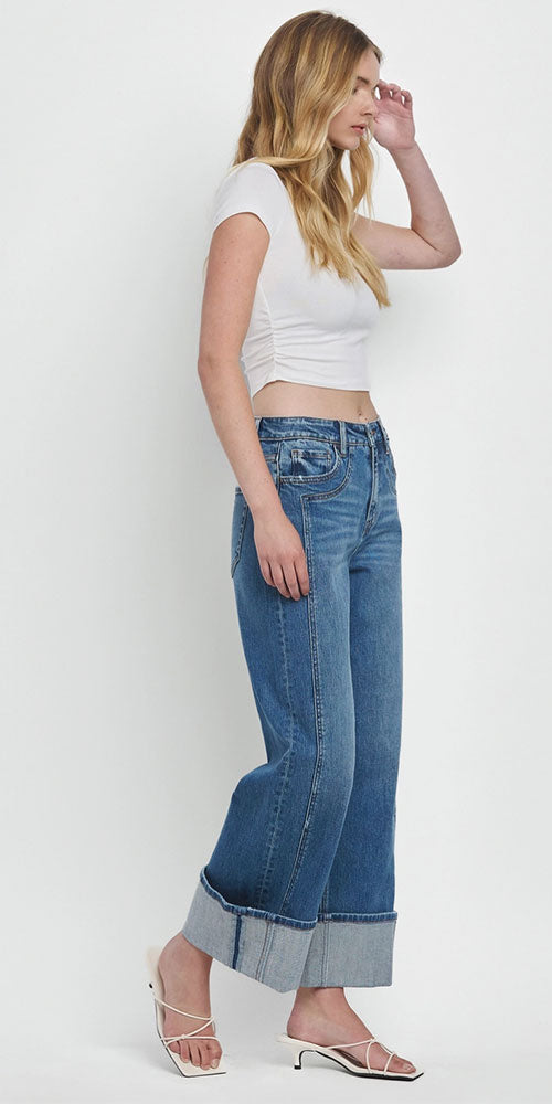 Size GuideSlip into pure comfort with our Boardwalk Cuffed Wide Jeans—the effortless staple that makes every outfit feel intentional. Featuring a relaxed wide-leg silhouette, unique side seaming and on-trend cuff detail, these vintage blue jeans deliver that coveted "lived-in" aesthetic without the wait. The weathered wash adds character and pairs seamlessly with everything from oversized tees to tucked blouses. Whether you're running errands or grabbing coffee, these jeans are your go-to for laid-back style.