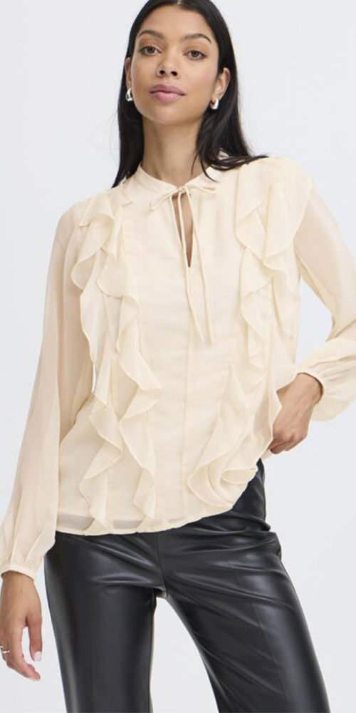 Size GuideElevate your wardrobe with the B.Young Gigi Frill Blouse, a chic piece featuring delicate sheer chiffon that captures a playful, Chloe-inspired vibe. Perfect as a layering essential or worn solo,...