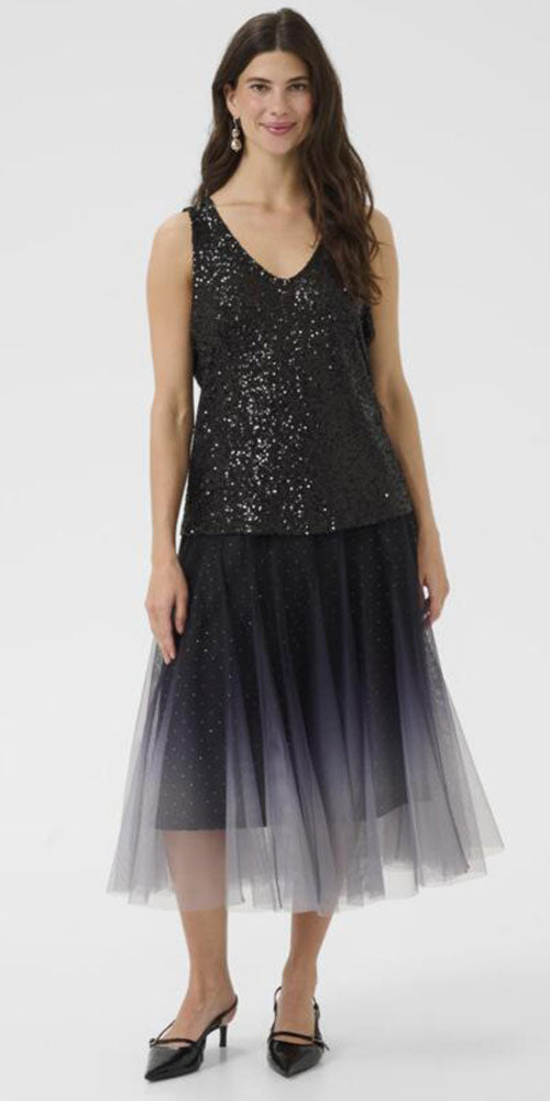 Size GuideThis Cream Sequin V-neck Tank in black adds just the right amount of sparkle to your outfit. Featuring an elegant V-neckline both front and back, it shines as the perfect...