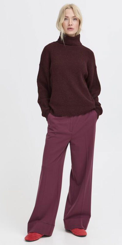 Size GuideWrap yourself in cozy softness with this B.Young Ribbed Turtleneck Sweater in a sizzling burgundy shade. Perfect for creating trendy monochromatic outfits or effortlessly paired with black or dark denim,...