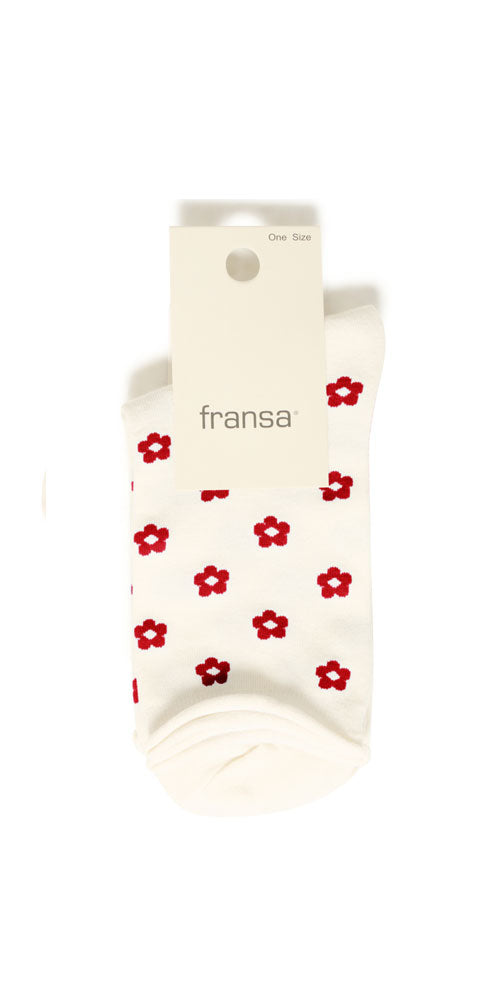 Fransa Flower & Dot Socks, red