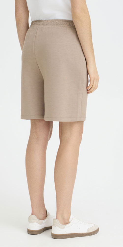 Size GuideElevate your casual wardrobe with these Fransa Scuba Knit Shorts in taupe. Crafted from soft, luxurious scuba knit fabric, they feature a refined silhouette with a flat front and elastic...
