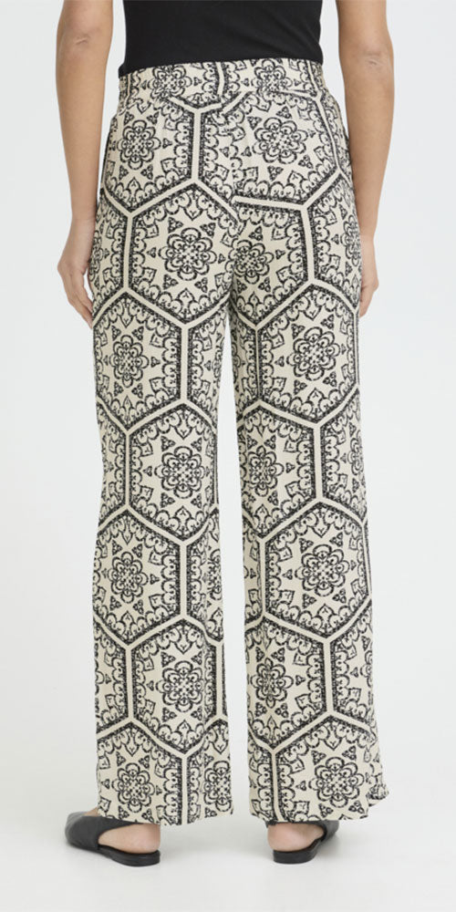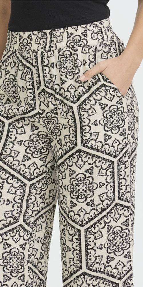 Size GuideEffortless style meets bold design with these Fransa Tile Print Pants. Featuring a striking black-on-white geometric tile pattern, they bring contemporary flair to any wardrobe. The comfortable elastic waist ensures all-day ease, while the relaxed fit transitions seamlessly from casual to dressed-up occasions. Perfect for layering or wearing solo, these breezy pants are a versatile essential that works as hard as you do.