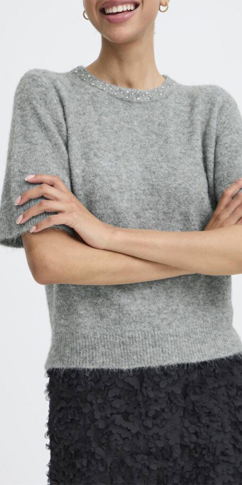 Size GuideWrap yourself in luxury with this adorable short-sleeve knit that's impossibly soft against your skin. The crew neckline sparkles with diamond-bright rhinestones that catch the light beautifully, adding just the...