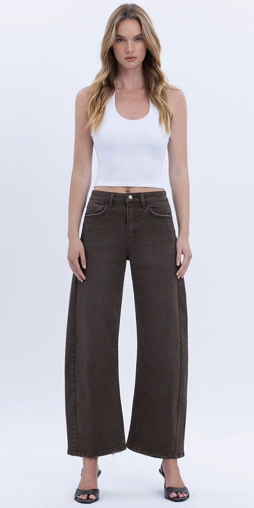 Size GuideMeet your new denim obsession: the Canyon High Rise Barrel jeans in decadent chocolate brown. These aren't your average jeans—they're cut with a moderate barrel leg and high rise that...
