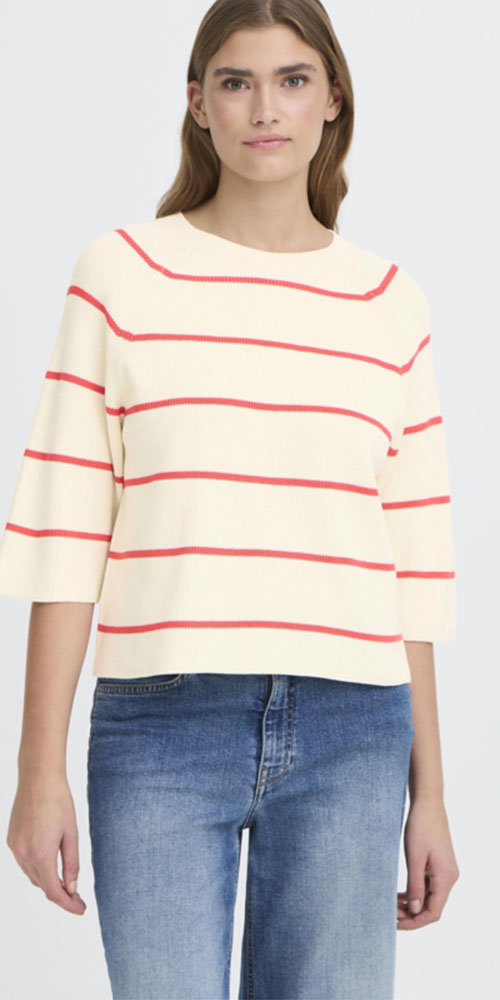 Size GuideEffortless style meets vibrant color in this relaxed-fit knit. The bright raspberry stripe adds a pop of personality to your everyday rotation—pair it with neutrals for maximum impact or layer it over a crisp white tee. Half sleeves keep things breezy, while the easy knit fabric moves with you all day. A wardrobe staple that doesn't take itself too seriously.