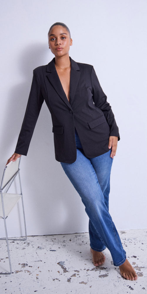 Size GuideSlip into effortless sophistication with our beloved ponte knit blazer, now in a roomier silhouette that feels as good as it looks. Lined for polish and comfort, this wardrobe essential transforms any outfit from ordinary to outstanding in seconds. Whether you're dressing up basics or toning down a statement piece, this versatile black blazer is your go-to for that "I've got this" moment—no fuss required.