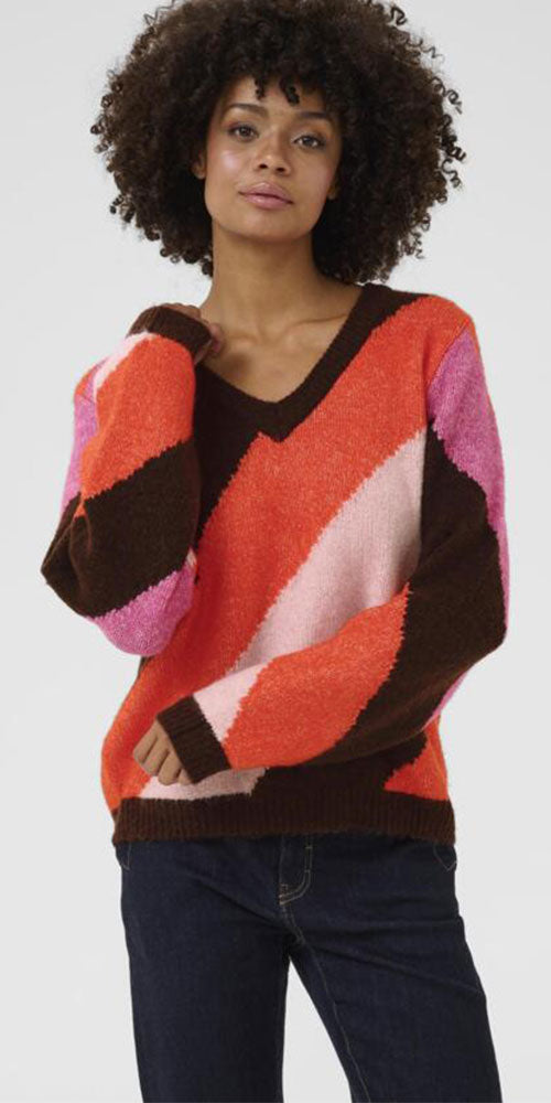 Size GuideEmbrace cozy vibes with this sweater featuring bold, colourful diagonal stripes in a comfy relaxed shape. Perfect for lounging around or brightening up outfits with browns and burgundies, it adds...