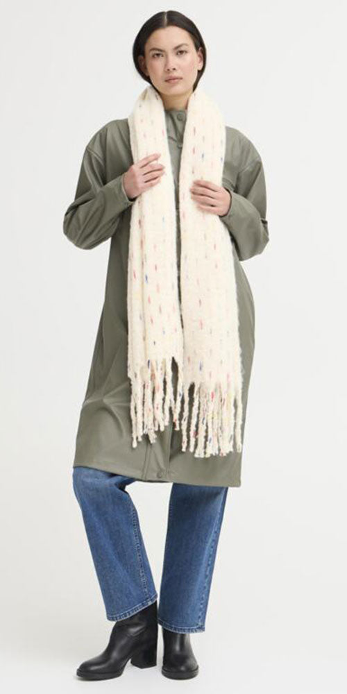 Size GuideWrap yourself in cheerful warmth with the Ichi Rainbow Fleck Scarf. Its fluffy cream base is sprinkled with colourful flecks that add a playful pop to any outfit. Perfect for brightening chilly days while keeping cozy and comfy all day long.