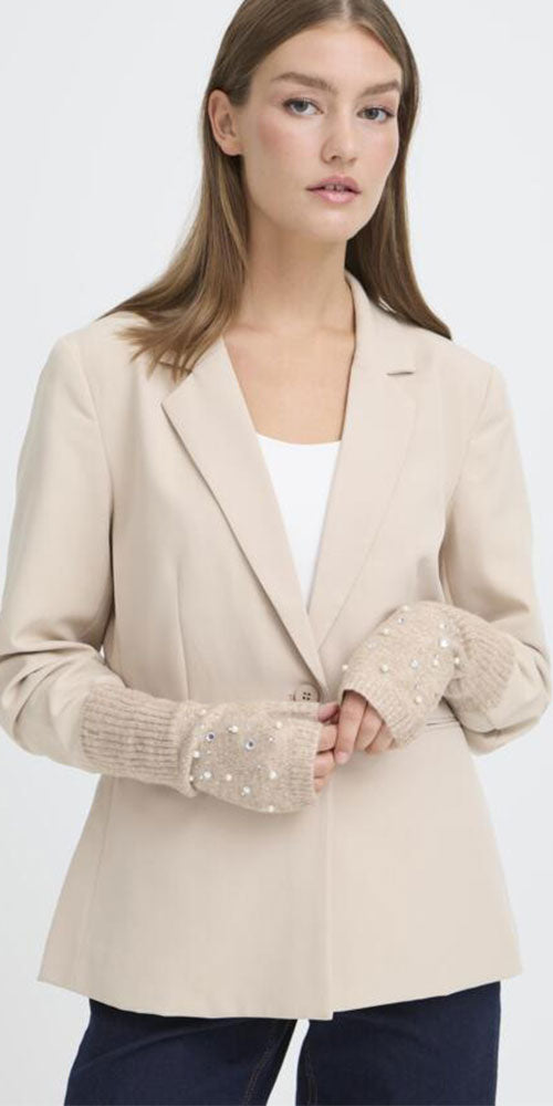 Size GuideStay cozy and cool with the Ichi Rhinestone Fingerless Gloves in oatmeal. These chic gloves sparkle with delicate rhinestone embellishments, adding just the right touch of glam to your chilly-day...