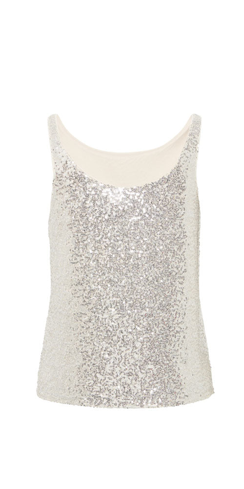 Size GuideCatch the light in this stunning sequin top featuring bright silvery platinum sequins that shimmer with every move. Rock it solo for maximum sparkle or layer it underneath blazers or cardy's for a subtle hint of glamour. Either way, you're guaranteed to turn heads and feel absolutely fabulous.