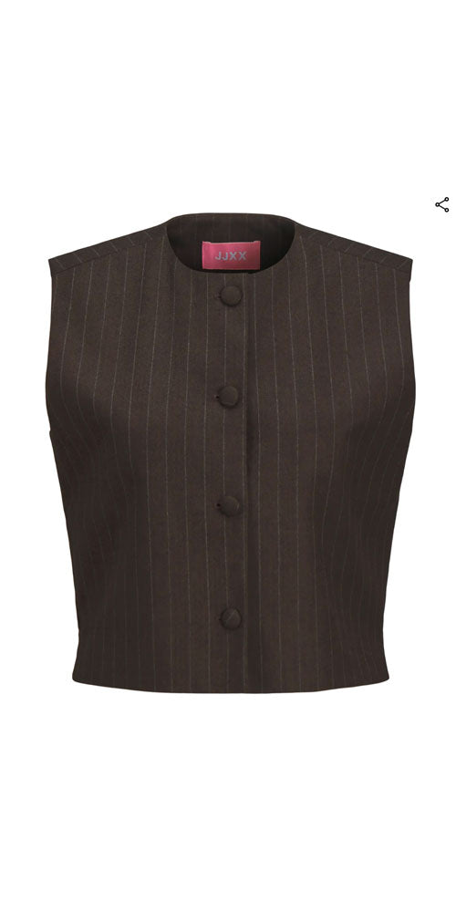 Size GuideMeet your new favorite layering essential—this JJXX pinstripe vest is the kind of piece that makes every outfit instantly more interesting. Crafted in rich brown with crisp pinstripes, it features a slightly brushed texture that feels as good as it looks. Fully lined for comfort and topped with covered buttons for a polished finish.
