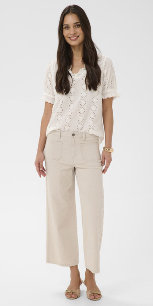 Size GuideDiscover Kaffe's beloved Sailor jean in a versatile light oat shade—the perfect spring neutral for any wardrobe. Crafted with excellent stretch, these jeans offer a flattering silhouette that hugs in all the right places. The cropped length is ideal for seaside strolls and pairs beautifully with white for an effortless, fresh look. A timeless piece that transitions seamlessly from season to season.