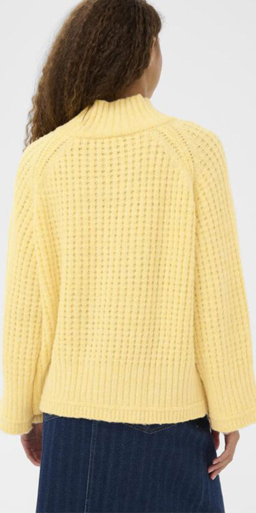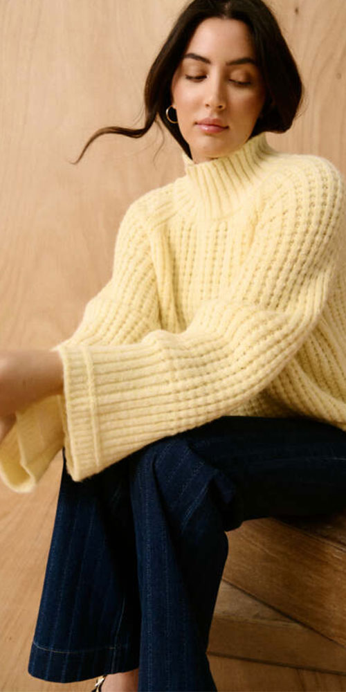 Size GuideBrighten your days in this delightfully soft butter yellow sweater that's all about feel-good style. The soft, textural knit adds visual interest while the relaxed high neckline keeps things cozy and effortless. Perfect for layering or wearing solo, this piece brings a cheerful, playful energy to your everyday rotation.