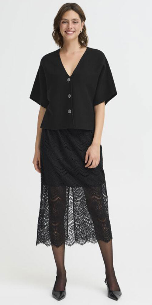 Size GuideElevate your everyday with this sleek black cardigan that transitions seamlessly from office to evening. Featuring a smooth knit construction and chic silver button details, it's the perfect layering piece...